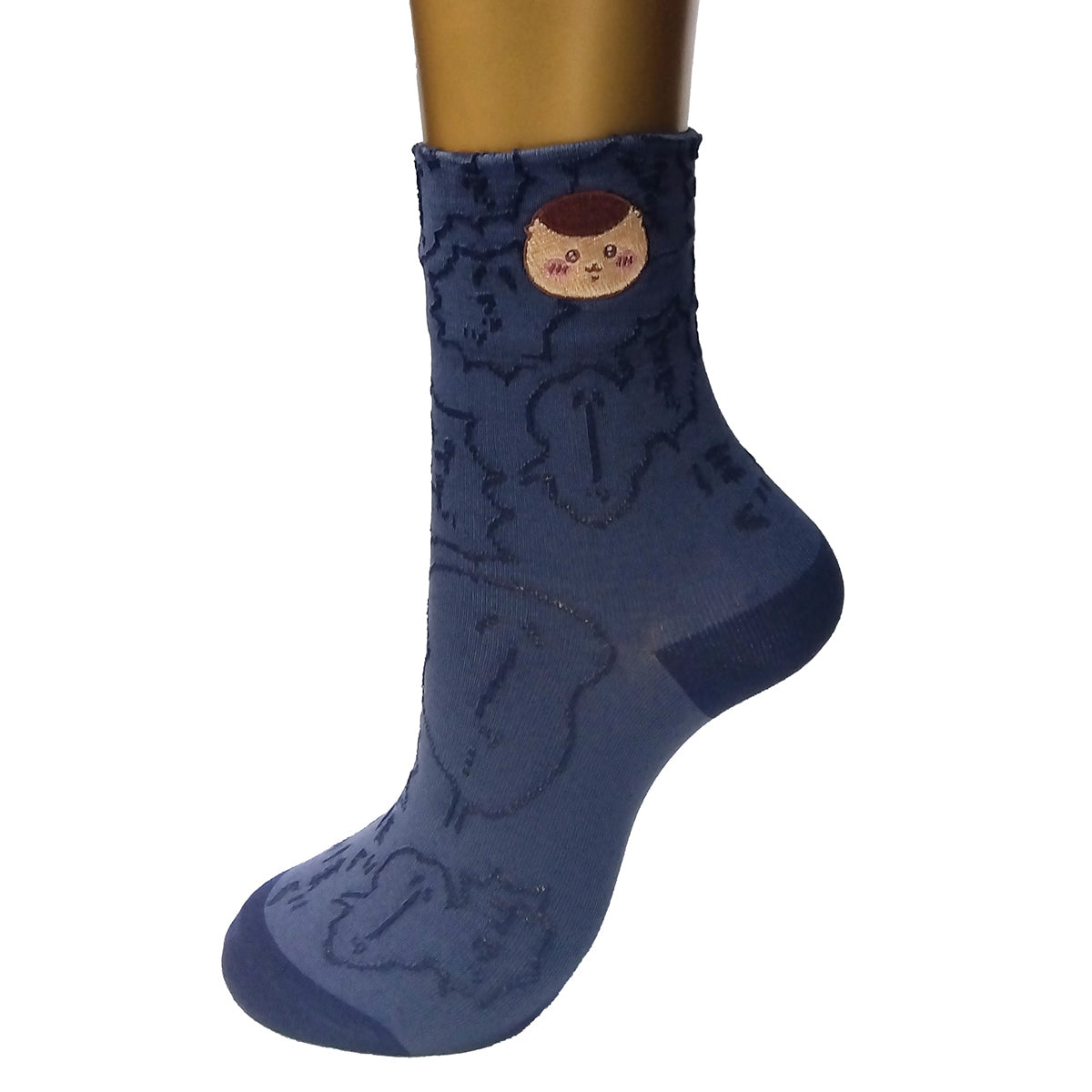 Chiikawa Float Embroidered Crew Socks (Kurimanju Navy) Women's
