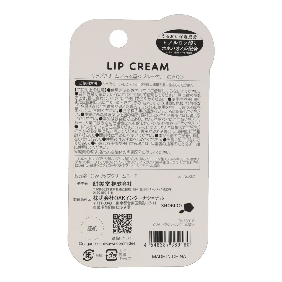 Full Ingredients: Tri (Caprylic/Capric Acid) Glyceryl. Palmitic Acid Ethylhexyl. Water-Added Polydimethylsiloxane. Polyethylene. Polyisobutene. Ozokerite. Jojoba Seed Oil. Microcrystalline Wax. Stearic Acid. Sodium Hyaluronate. Tocopherol Acetate. BHT. Phenoxyethanol. Fragrance
