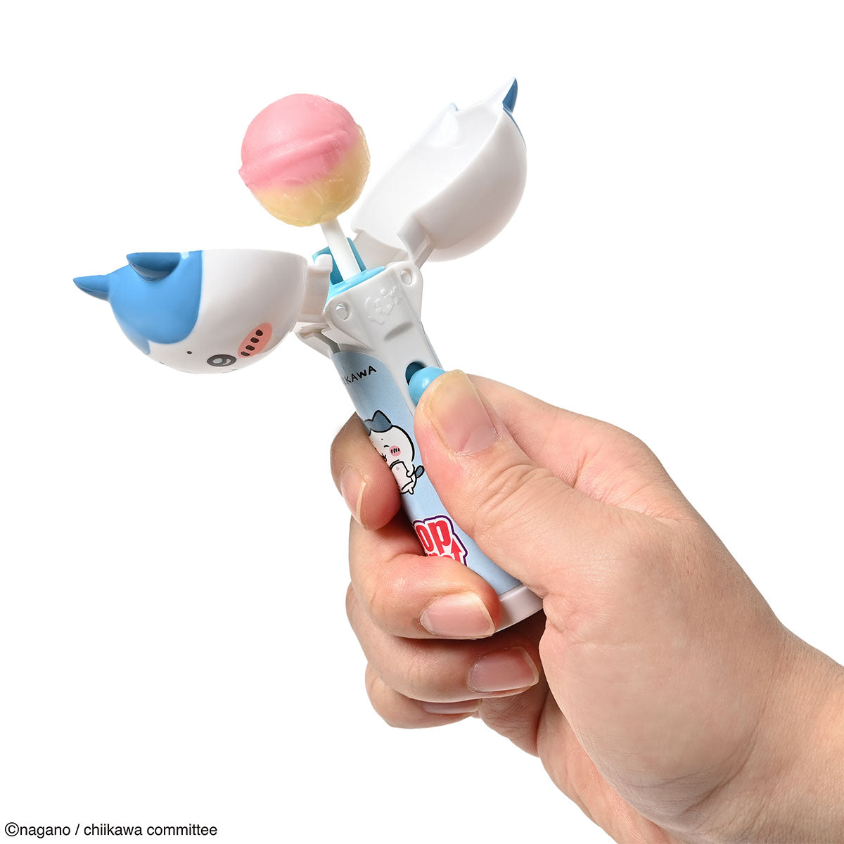 Hachiware makes a new appearance as a candy holder for storing and carrying lollipop candies!