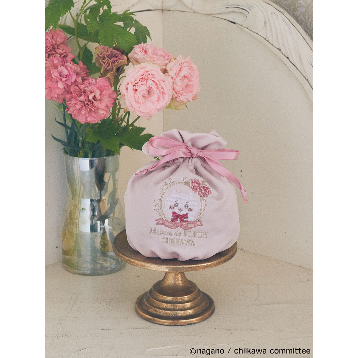 Maison de FLEUR (Maison de Fleur) embroidered handkerchief pouch with a lovely barrel and ribbon dress-up Chiikawa!